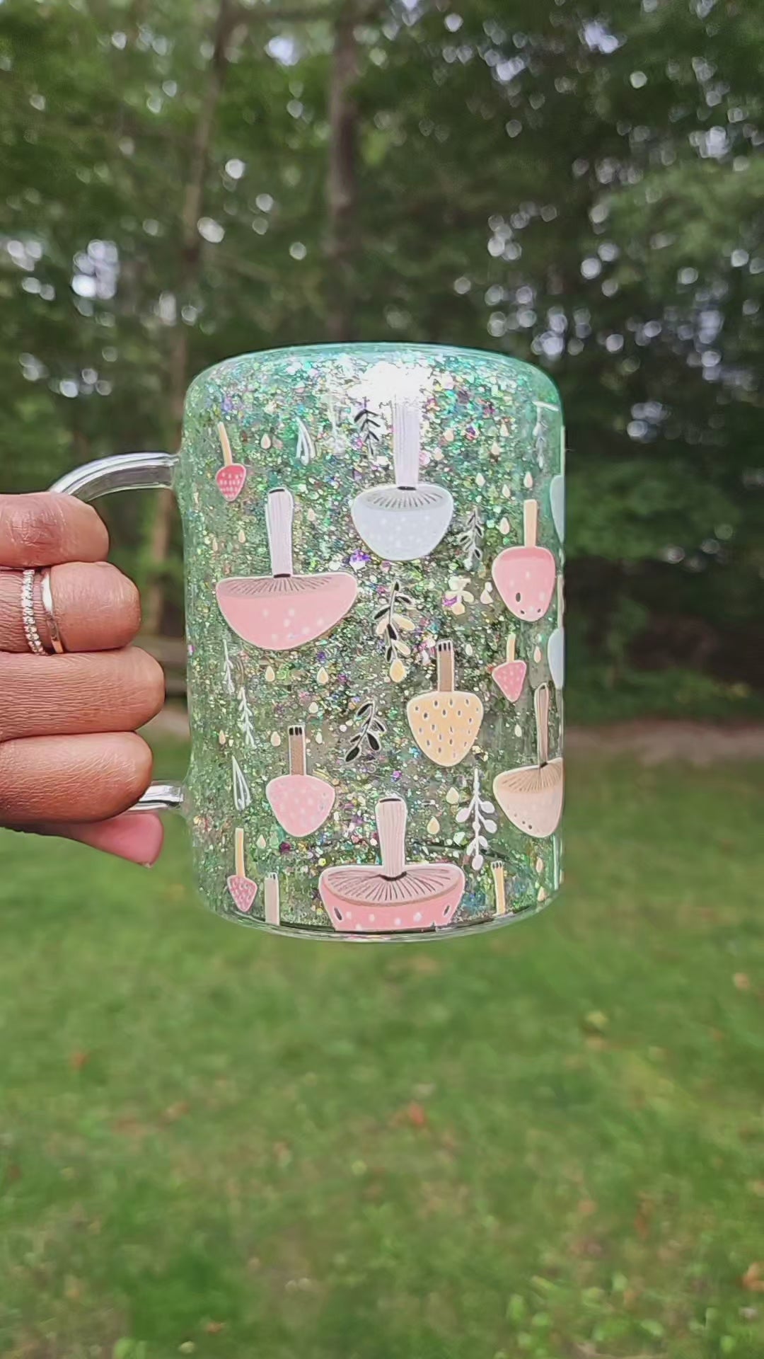 Elevate your sipping experience with our stunning 15oz Mushroom glitter globe glass mug! Featuring a vibrant green and white design, this mug is not just a drinkware piece; it's a statement. Perfect for your morning coffee or evening tea, the glitter finish adds a touch of whimsy to your daily routine. Grab yours today and let every sip sparkle!