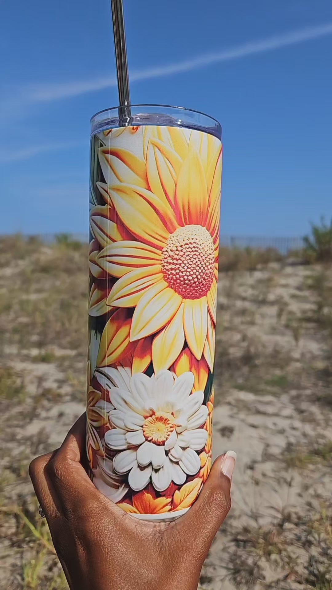 - Comes with straw and push-top lid.
